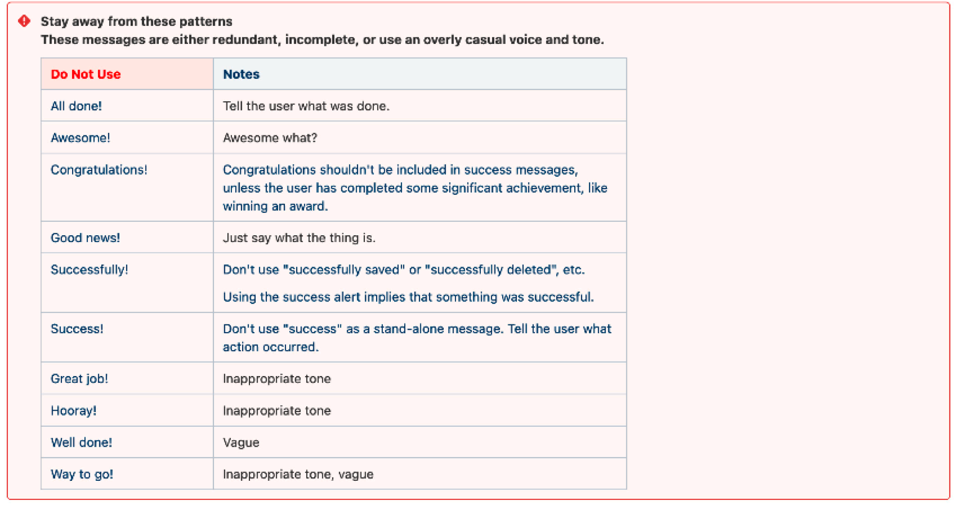 I compiled hundreds of success messages across the entire product ecosystem to create a comprehensive style guide.