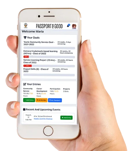 ed-tech legacy software redesign: community service hour tracking, service hour verification, goal creation & management