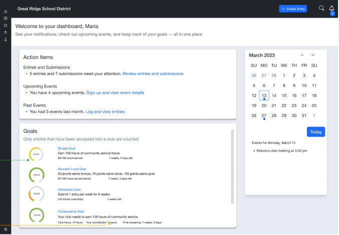UX and content design for an ed-tech software that tracks community service and engagement hours for K-12 students.